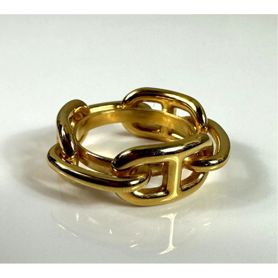 Authentic Hermes Chaine d’Ancre Scarf Ring Gold Tone Signed Hermes Accessory