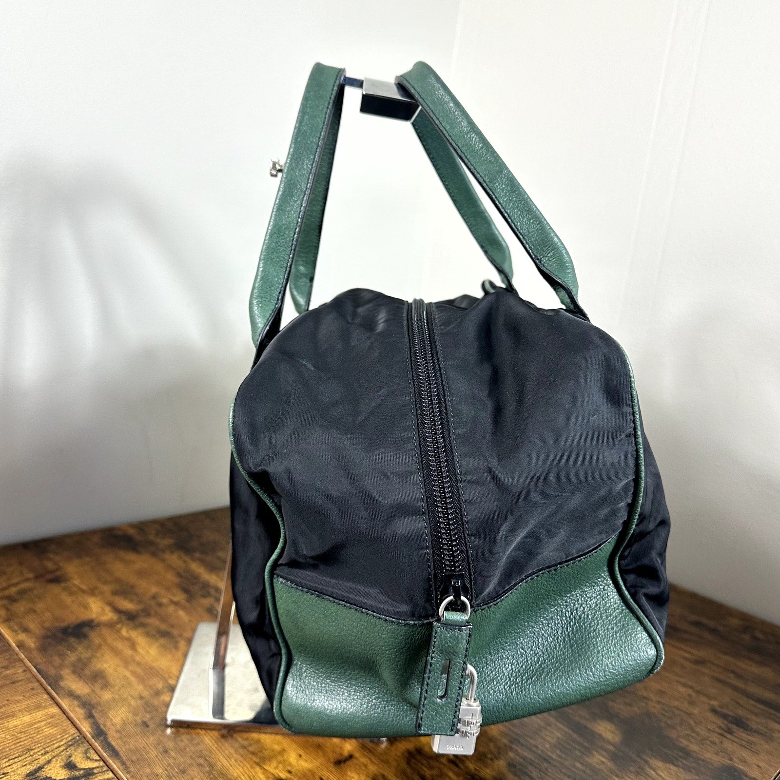 Prada Tessuto Nylon & Leather Travel Duffel Bag Overnight Weekend Authentic