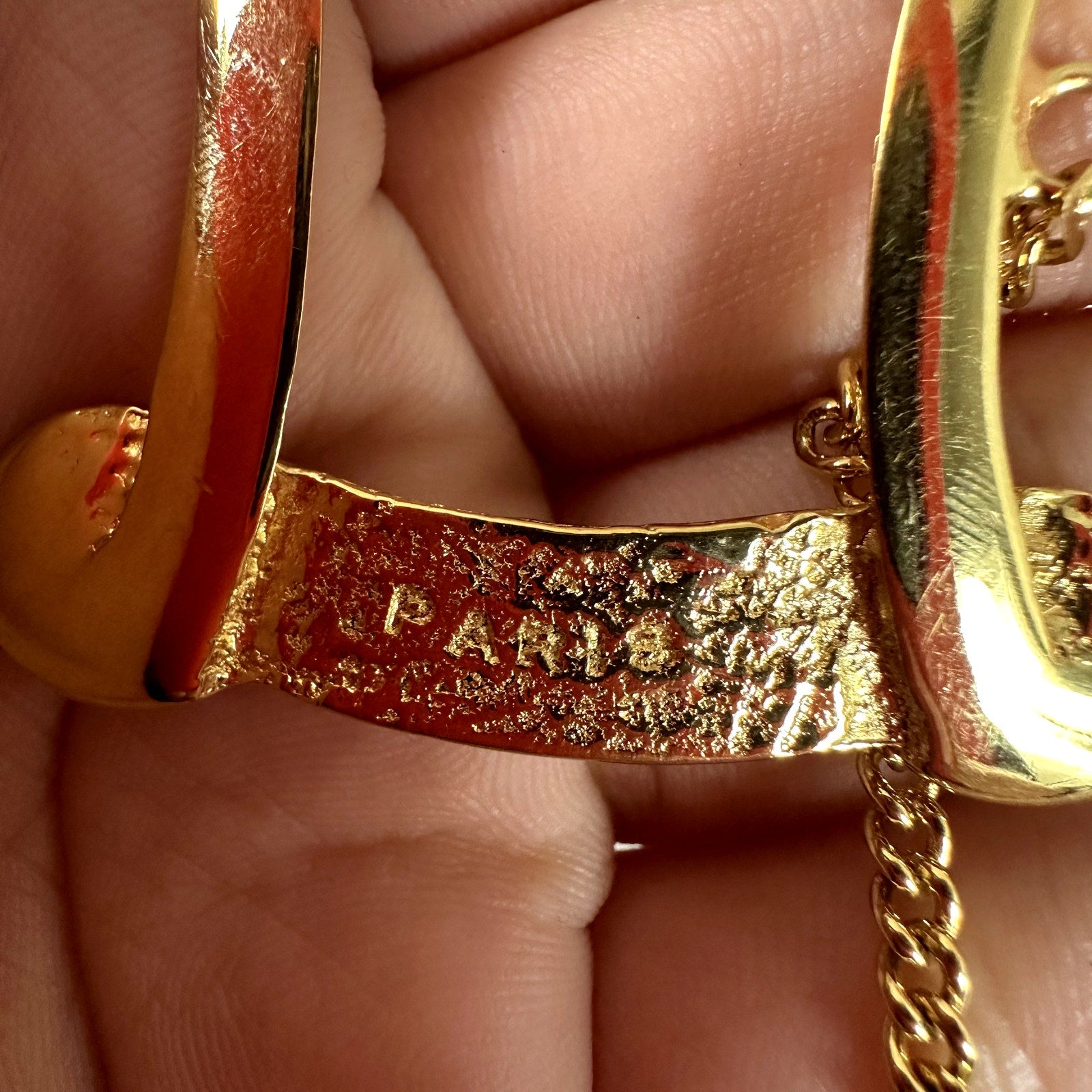 Vintage CELINE 1990 Gold Tone Scarf Clip Brooch Bar Frame Made in Italy Chain